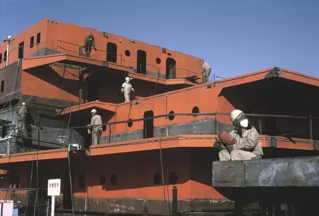 1982年,天津。女电焊工在船厂。与其他船厂一样,焊工大多数是女性。