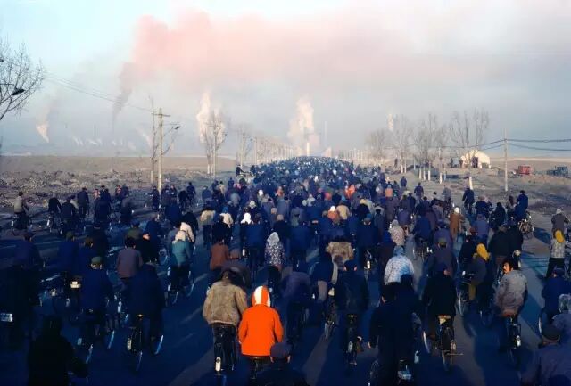 1980年,内蒙古,包头。早班时间,包头的道路上拥挤着去钢铁厂上班的工人。