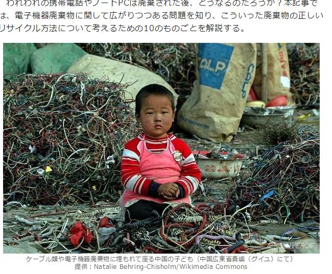 再看看这篇报道:全世界70%的电子垃圾被非法运到中国。小编在想凭什么全世界享受电子科技带来的便利,而电子垃圾给人类带来的灾难却一股脑的抛给中国人?除了海外不法企业奸诈之外应该有更多的中国国人为了自己的利益而不顾中国环境遭到破坏。除了无耻更多的也可能是无知。