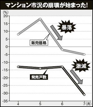 日本不动产记者榊淳司氏说一般楼房在建的时候就开始卖,建好了就卖完了。但是现在正在贩卖的地方还有很多。35做新楼房还有23做楼房正在售卖中。有7成的楼房没有卖完。这是在他职业生涯30里没有见过的现象。