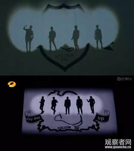 《天天向上》主持人登台前预热与日本男团KAT-TUN2014年巡回演唱会开场如出一辙。
