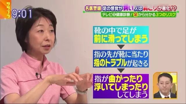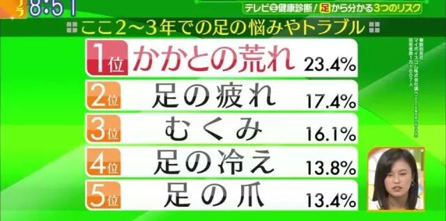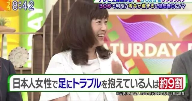 在进入正题之前,主持人和嘉宾们先说了一下日本人的足部问题。节目中指出,日本90%的女性都有着各式各样的足部问题。