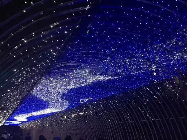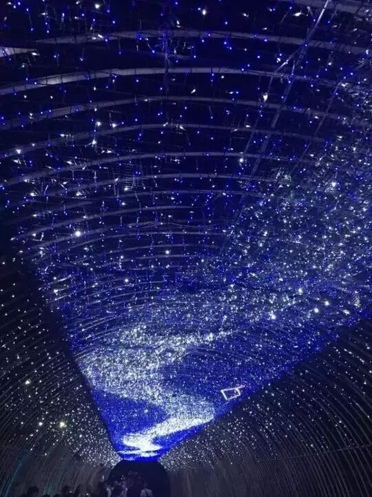 浪漫的一段路,七夕祭会场的当家看板光之天川。包裹上细密的LED灯阵,在头顶模拟出银河的姿态一直通向天边,在这里人们手牵手走过银河,仿佛当年的牛郎与织女。
