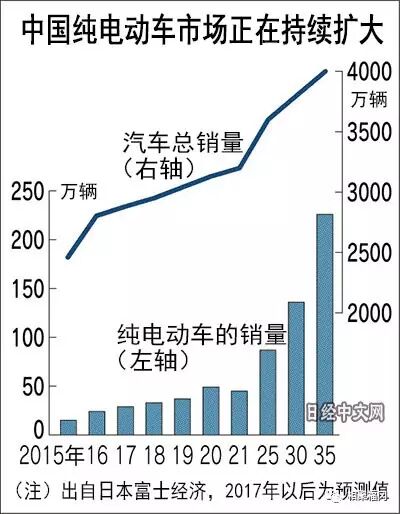 在丰厚的补贴政策等的推动下,中国的纯电动汽车市场已经成长为全球最大规模。近年来,以比亚迪(BYD)为首的中国当地企业以低价格为武器正在崛起。预计中国政府最早2019年将引进要求汽车厂商必须生产一定数量电动车的环保限制,纯电动汽车市场被认为会进一步扩大。