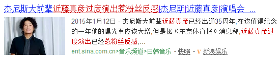 就连去年的J家跨年演唱会,也被搞成了近藤的单独演唱会,令不少花钱买票进场想看自家偶像的粉丝们愤而离场。