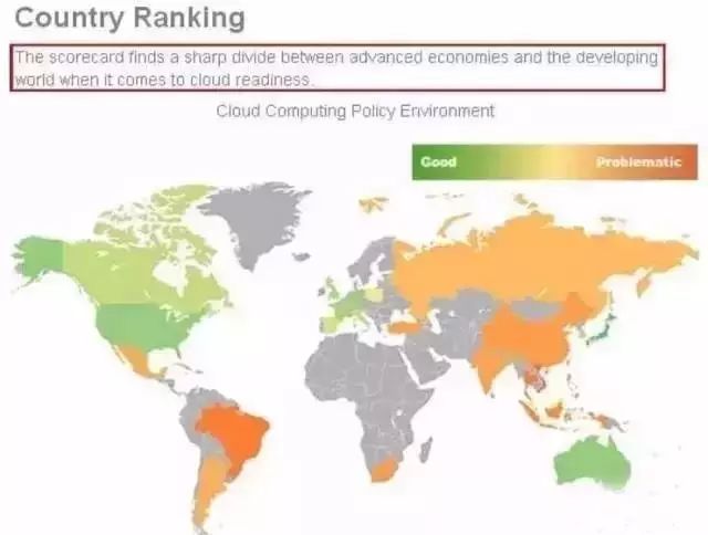 云计算技术越发达越接近绿色(good),反之则越接近红色(problematic),而最终能获得深绿色资格的只有日本一家。