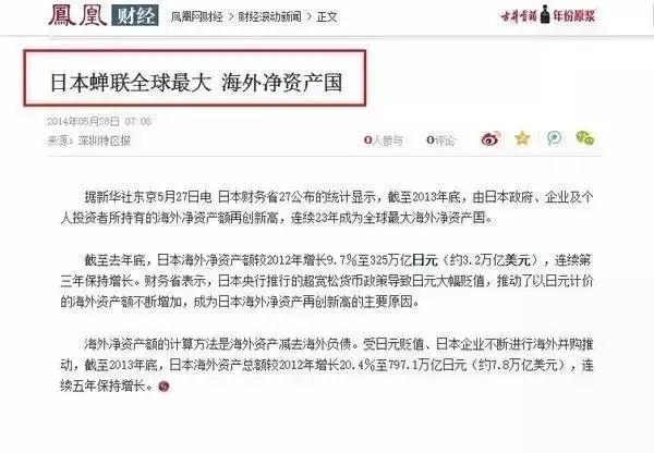 日本蝉联世界最大海外净资产国,这是什么意思呢?也就是说,日本在海外还有一个超级日本。
