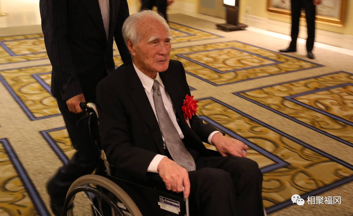 老人家脚伤了带病来参加的。也是对中日友好做出很多贡献的老人家了。值得尊敬。