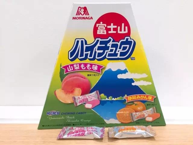这款是富士山麓限定混合版,重现了以富士山融化的雪水而生长的山梨桃子和静冈橘子的果味。香甜的桃汁和鲜榨的橘汁被封存在一颗颗软糖送到嘴边,这是富士山的味道。