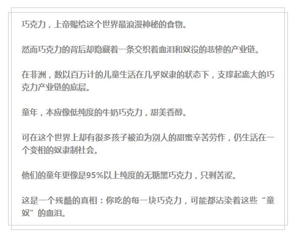 如果说是我们在一口一口吃掉这些孩子童年,倒不如说这些世界知名的巧克力工厂才是始作俑者。