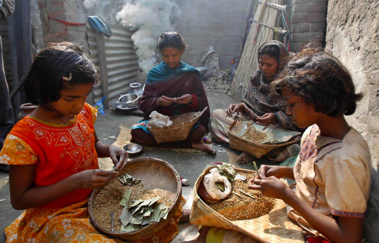 在印度偏远地区充满烟草尘的屋子里卷好一支比迪烟,