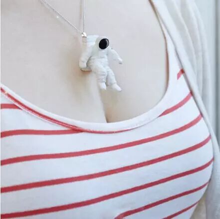 他的新作品Tanima系列项链饰品,用一个个萌态十足的卡通形象在胸前做出各种飞跃的样子,无论是身穿西装、宇航员服、登山装还是一些小动物,都刻画地相当有趣!