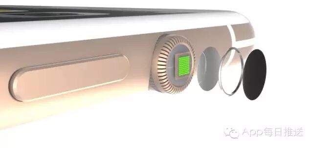 此外这款iPhone 7还在侧边加入类似Apple WATCH的数码表冠设计,集成了Touch ID和Home键的功能,那么突出的一大块,有木有为处女座的童鞋想过啊喂!