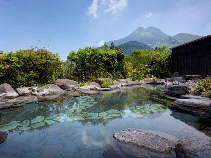 从露天温泉可以看到由布岳的雄姿。早春的时候空中弥漫着淡淡的梅花香。