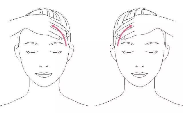 从额头发际线部位向额头中央部位,左右交换用相反手提升。