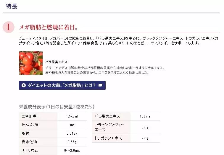 MEGA BURN提取了南美高山稀有玫瑰果实精华,并用POLA高科技术合成,