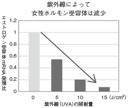 POLA研究还发现,女性荷尔蒙不仅随着年龄的增长减少,而且抓取荷尔蒙的受容体也会收到紫外线的影响减少。所以即使你有荷尔蒙身体抓不住它也没用。从下面图我们可以看到夏天用防晒霜是多么的重要。