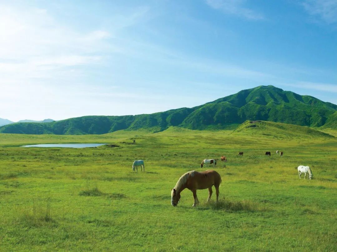 熊本县北部是以阿苏山为中心的自然景观丰富的区域。阿苏山由五十多座火山先后喷发叠加而成,堪称世界罕见的奇观。阿苏市的“大观峰”、辽阔草原“草千里ケ浜”,像帽子形状的“米冢山”都是打卡胜地。