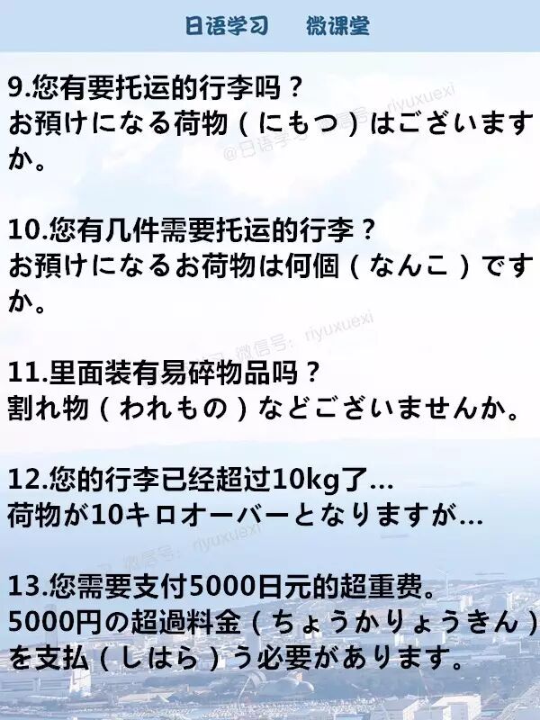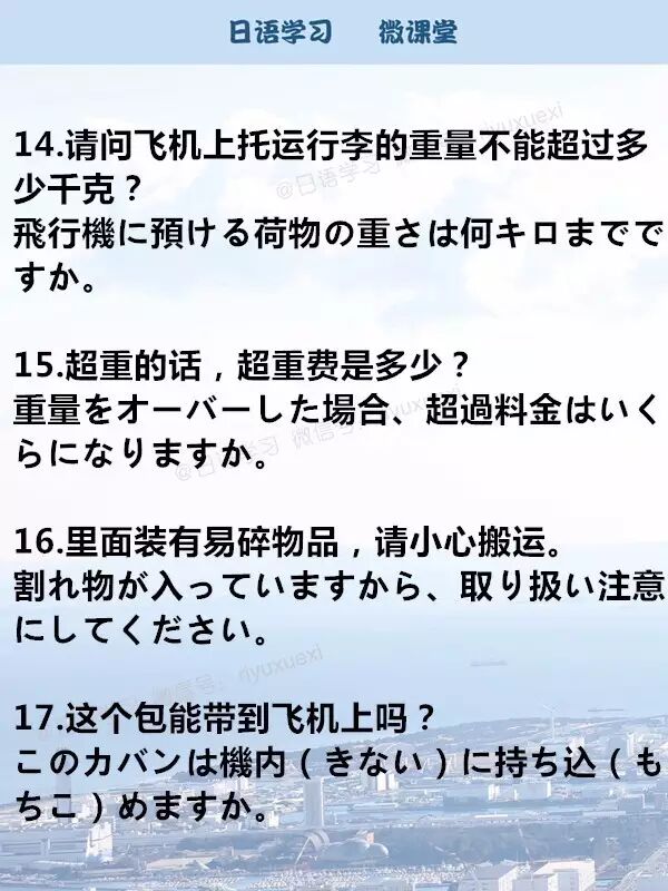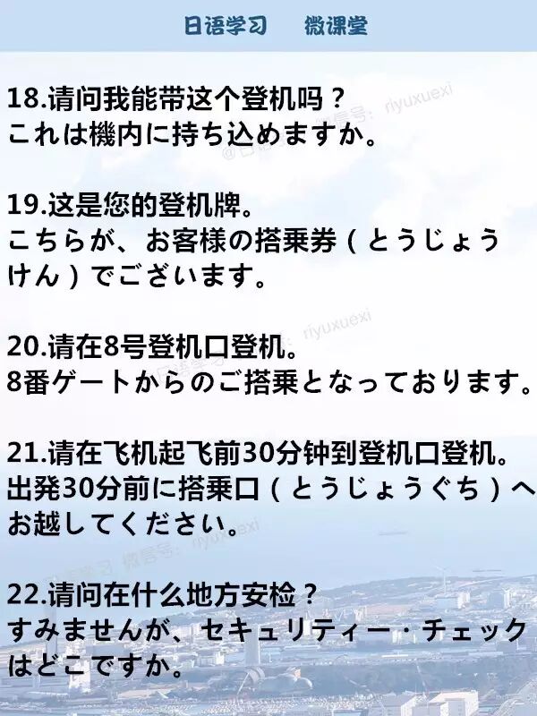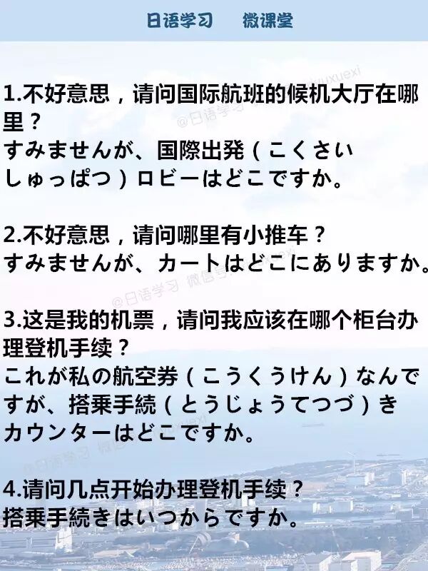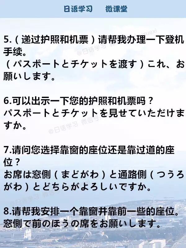 接着学习办理登机手续的日语也是必不可少的。经过这一步才能怀着激动的心情奔赴目的地不是?