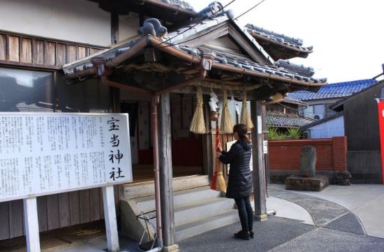 写着“宝が当たる”文字的宝当神社(ほうとうじんじゃ),是最近日本很火的一间神社,因为据说在这里参拜后,就能中彩票。这里是1574年为了纪念和海贼斗争,保护当地百姓的野崎纲吉(のざき つなよし)而建造的。