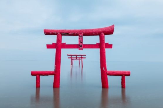 这座浮于海上的,充满神秘气氛的鸟居,是大魚(おおうお)神社最吸引的景点。从这座神社的名字中所带的“鱼”字,相信大家就可以猜到,这座神社是保佑海上渔民丰收的神社了。