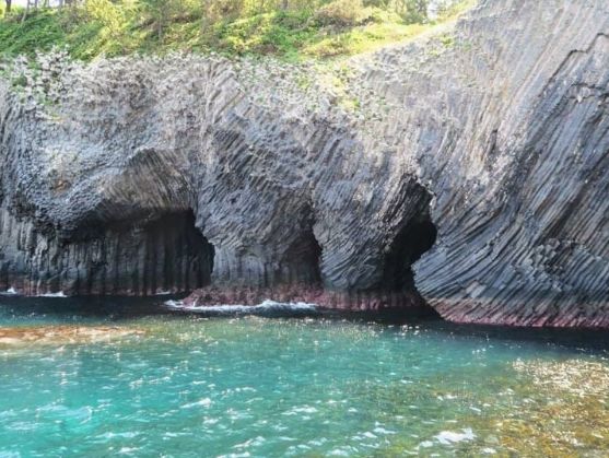 佐贺县北部沿海的七釜(ななつがま)是以奇岩出名的著名景观。由于火山喷发的的岩浆遇到海水后迅速冷却凝固而形成了各种形状各异的柱状岩石。