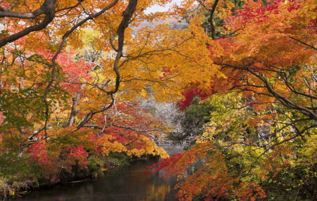 大分县的红叶景点不那么有名气,但胜在小众,游客少,无需避开人群,就可以悠闲的拍大片。