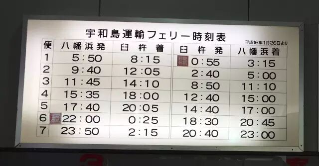 从九州(大分臼杵)到四国(爱媛八幡浜)可以乘坐宇和岛渡轮往返两地。想要从九州一路玩到四国,这也是距离最近,最便捷的方法之一!