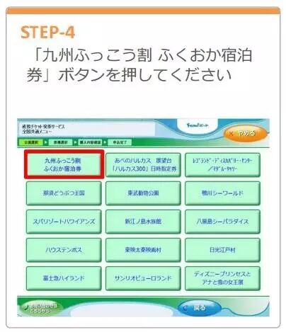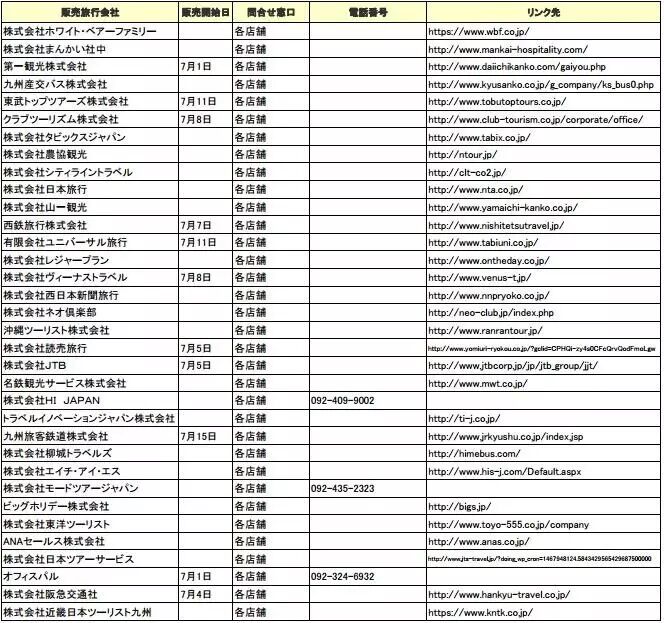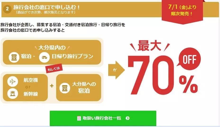 现在可以通过旅行社购买住宿优惠券的县有福冈县,佐贺县和大分县。其他的先正在制作中。