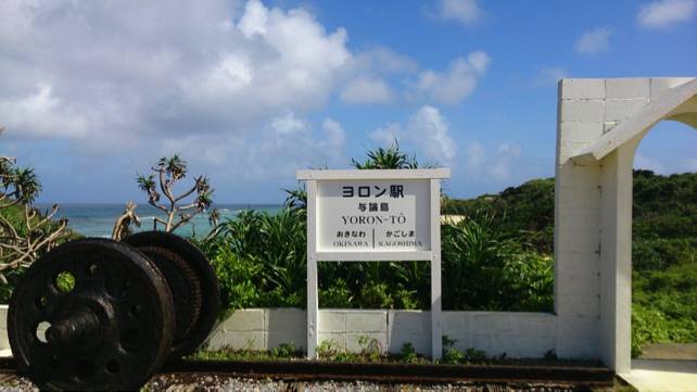 与论站,是因连接冲绳和与论岛和鹿儿岛的梦幻之路而建造的站台。实际上并没运行电车,只有月台,短短一段轨道和车轮。与论站前有旅游步道,往前走便可以看到美丽的大海了。
