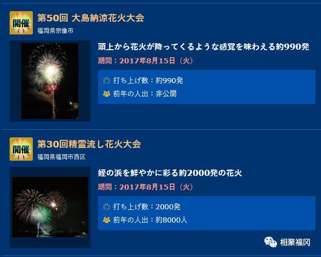 今天再给大家放一份福冈县内的花火大会一览,希望大家玩的开心啊