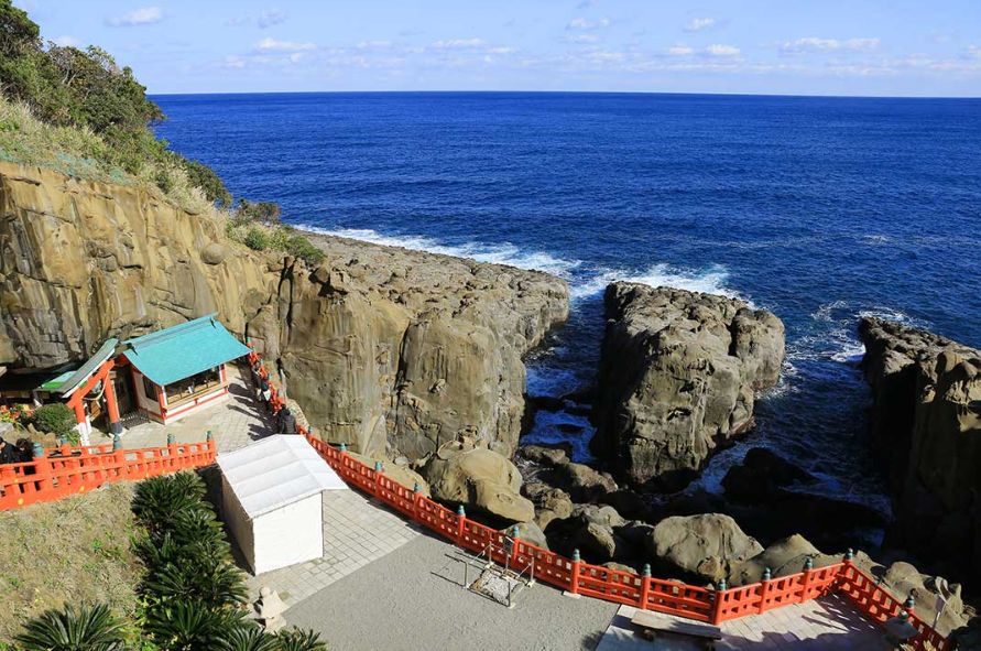 在日南海岸国定公园内的悬崖边建的神社,据说这里供奉着安产,育儿,渔业和航海的神,最近观光客越来越知道这里了,所以人很多,但是这里有一个国外游客很少人知道的绝境就是在东侧海岸的地方有元旦限定的朝阳观赏地哦,喵喵偷偷告诉你们。