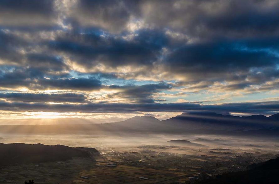 阿苏外山的最高峰,世界最大级的破火山口观望地阿苏观光的定番景点。雄伟的阿苏五岳一直到九重连山360度全景风景,早上来访问的话可以看到如同幻想般的云海而且早上的橘色的朝阳光辉透过云层有不一样的感觉。最佳观景期在春天和秋天。早晚温差大的日子会更加的美。