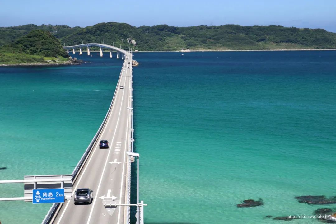 尤其是2000年开通的角岛大桥,全长1700米,是全日本第二长桥,以其壮丽的风姿成为众多汽车广告商的最爱,也因为大量CM而受到了关注,优美的日景及夜景都走红于SNS。