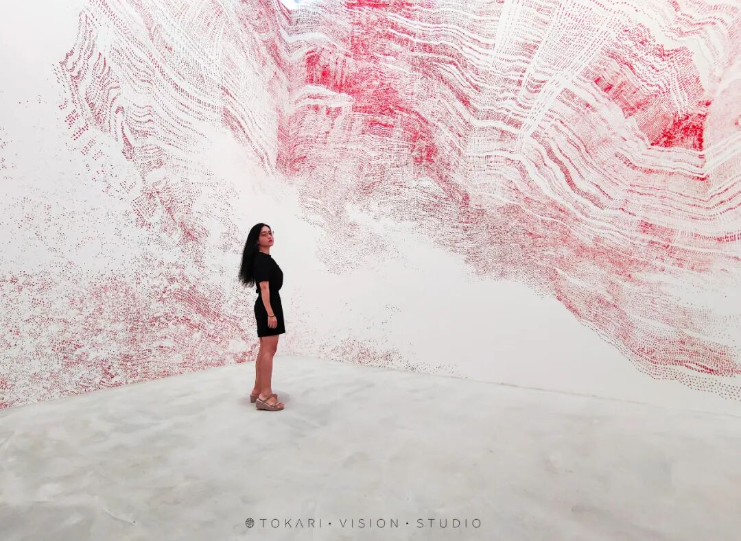 可能看到这儿,童鞋们应该还没看出来到底哪儿特别,不就是设计风格不错么,这种酒店日本很多哇。但是……把画廊开在酒店里的应该就不多了,更何况是艺术类学校(还是我毕业的学校,就说巧不巧吧?)与酒店共同合作的设计,那就更少了把。前台的设计,整个就是一个艺术品,全部都是一点一点的画上去的,画满了整个空间(图2),让人进入酒店就如同置身美术馆一样。