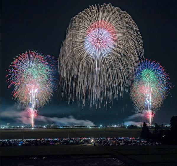 而日本的三大花火大会分别是全国烟火大会——大曲烟火、土浦全国烟火大会、长冈祭大烟火大会,具有非常浓厚的节日氛围。
