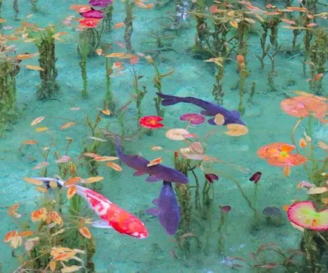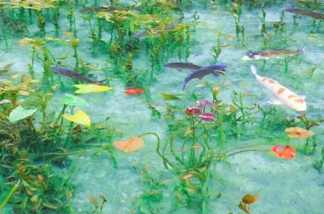岐阜县的根道神社里有一个无名的水池,池水清澈见底,水底游鱼五彩缤纷,睡莲摇曳错落,又像镜面一样把天空纳入景色中,由于跟莫奈的睡莲及其神似,被人称为莫奈之池。