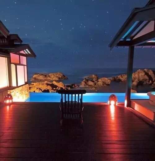 这间拥有450年历史的老字号温泉旅馆内的13间房的预约通常都非常困难。无论在室内还是室外,眼下永远是一片美到令人窒息的无敌海景。
