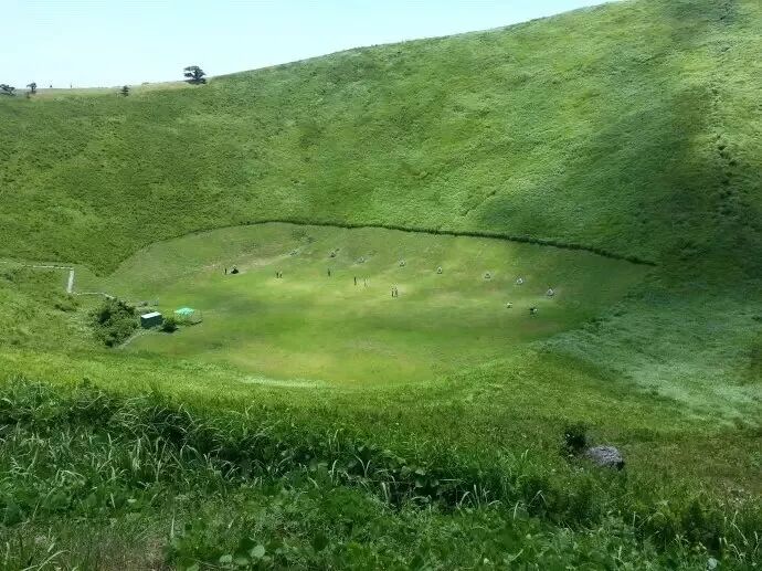 山顶中央是凹陷30公尺深的火山口,从高空俯瞰大室山,整座山体呈接近对称、完美的圆锥体,搭乘开放式缆车上升至山顶更是特别的体验,十分新鲜刺激哦。