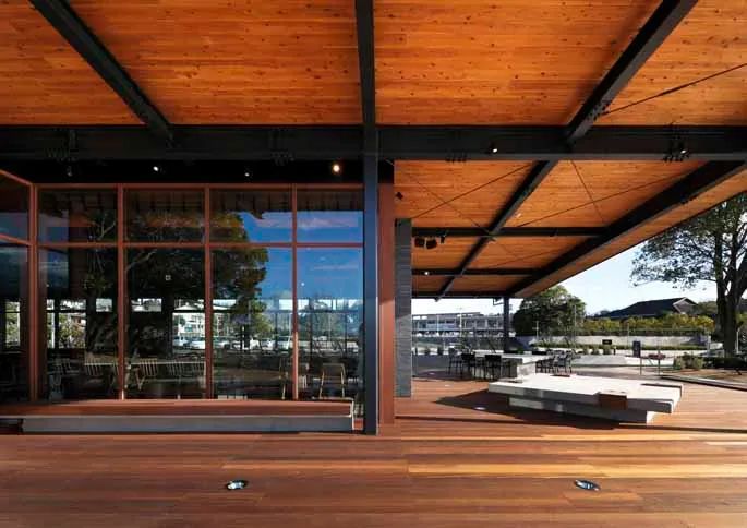 采用大量木材修建而成,与公园内的自然气息相得益彰;四周墙壁皆为大片落地玻璃幕墙,天井为挑高设计,通透开阔且可以将公园内的景致一览无遗,樱花季及红叶季的景色犹为秀丽。特别是晴天的时候,几乎在任何位置都可以感受到阳光的印记。
