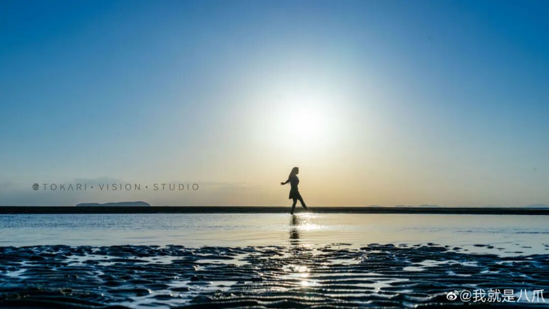 接着赶在落日前,到达位于香川县三丰市的父母浜。父母风靡日本社交媒体,人们纷纷到前来拍照打卡。这里能够拍出类似南美洲「乌尤尼盐沼」的照片,仿佛误入天空之境。