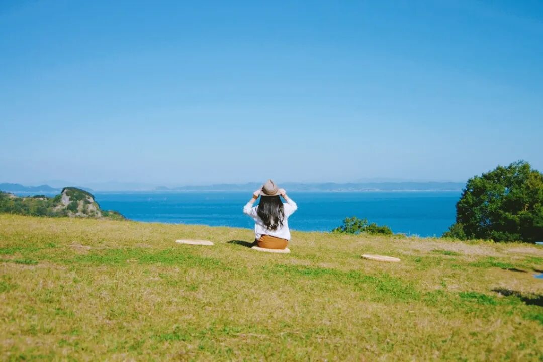 在展望台眺望,夕阳西下,晚霞温柔地笼罩着濑户内海的岛屿。人们敲响幸福之钟许下心愿。或是在岛上挂一块天使之路的心型绘马、贝壳绘马,将思绪托付给这片浪漫的海。