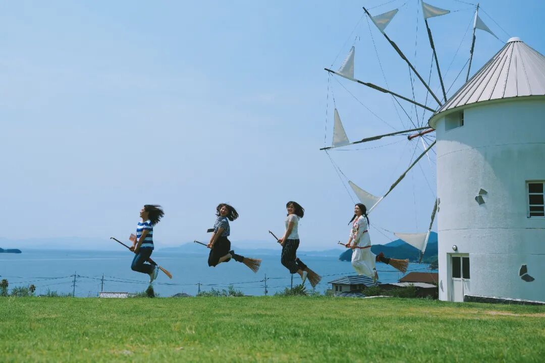 橄榄公园还有很多趣味活动。比如借扫帚给游客,扮演宫崎骏动画中的魔女琪琪,与风车来一张合照。