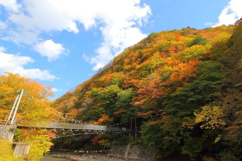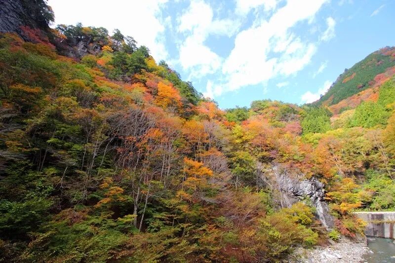 中津峡溪流两岸的绝壁高达百米,密林丛生,每到秋季就会被染上成片的红色和黄色。无论是在山林中漫步,还是在溪边垂钓露营,都是在这里享受秋景的最好方式。红叶季的时候这里还有奥秩父大泷红叶祭等活动,也是一年当中最热闹的时候。不过今年受疫情影响,奥秩父大泷红叶祭取消了。