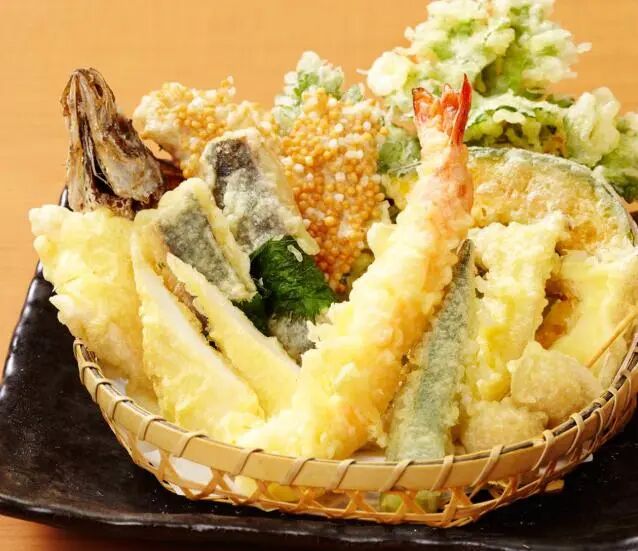 食材方面,选择更是十分的多种多样。海鲜、肉类、蔬菜、菌菇和水果,都可以用来制作天妇罗。现在还有日本人把饼干、纳豆、香肠、芝士、寿司甚至冰激凌等等也用来做天妇罗。不过,最受欢迎的天妇罗依旧是炸虾和炸鱼之类的传统风味啦~