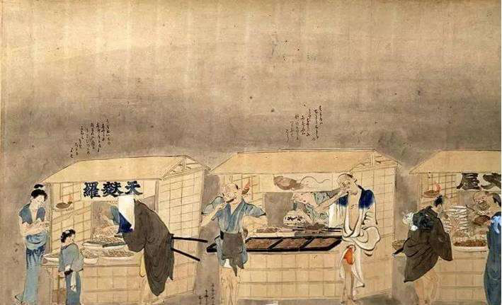到了江户时期,食用油产量猛增,天妇罗才正式开始在民间流行开来~而当时的江户,路边摊、快餐式店铺也很流行,像寿司、鳗鱼、荞麦面和天妇罗这些好吃又方便的食物很快就在日本美食界有了自己的一席之地。