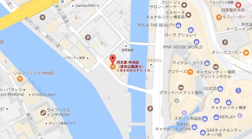 河太郎是一家创业50年的老字号。本店在福冈最繁华的中洲与运河城隔河相望。这家以吃活いか而享誉海内外的老店,很多海外的游客也慕名来来。