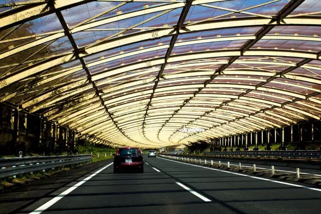 从大分归往福冈的高速路上,突然邂逅这一美妙的”隧道“,如同这般暖暖的夕阳,洒在肩上,洒在心上,令人神往。