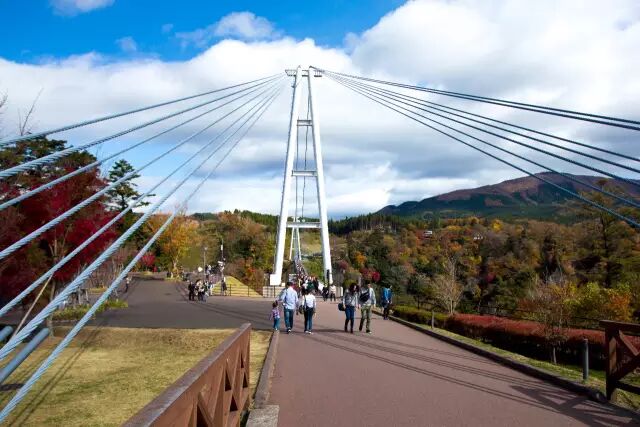 那天,第一次来见九重梦大吊桥。蓝天白云,漫山红叶,一切都是刚刚好。当第一眼望见大桥,感觉真的如同”梦“想成真!