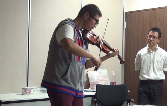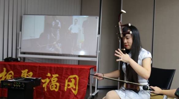 王雯同学带来了精彩二胡表演。在场的新生小帅哥,竟然按捺不住,技痒来了个二胡PK。